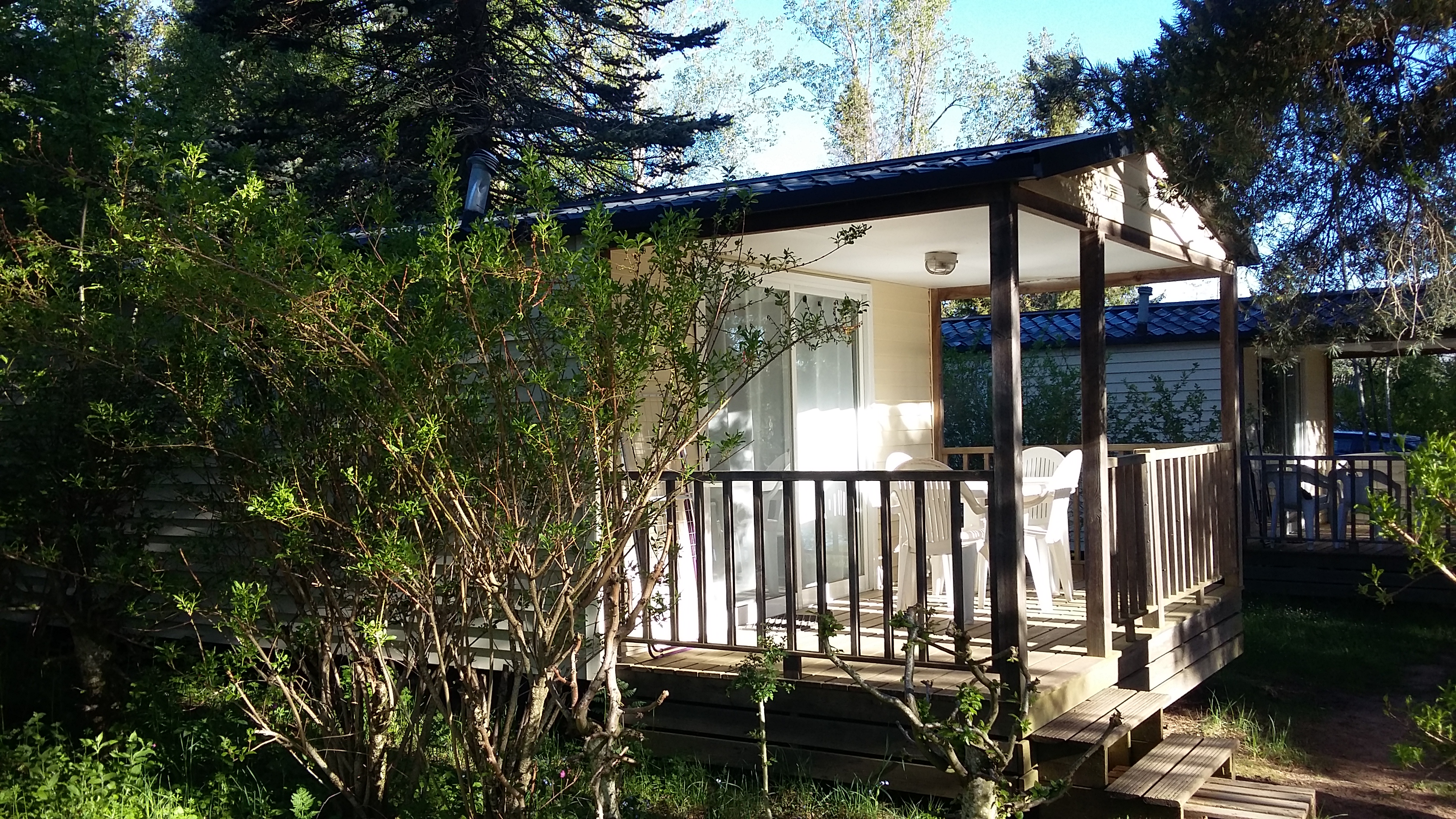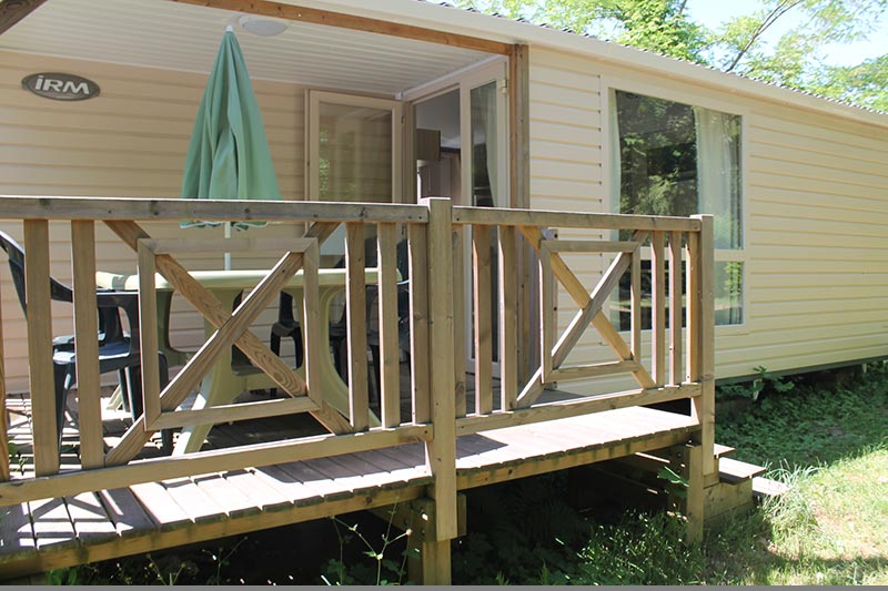 Mobil Home de 25 m2, vue sur l'étang, maximum 4 personnes, terrasse semi-intégrée de 6 m2, cuisine équipée, coin salon, 1 chambre lit 140,1 chambre 2 lits 70 WC, douche. Mobilhome de plus de 12 ans